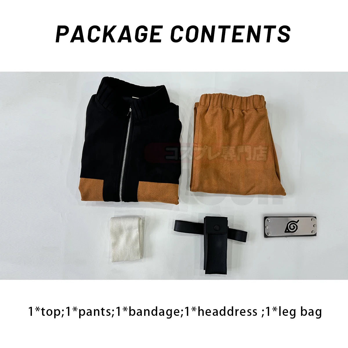 Includes Naruto’s signature top, matching pants, and Leaf Village headdress (headband)