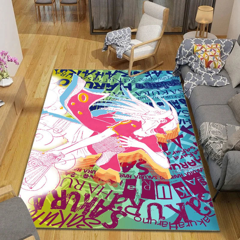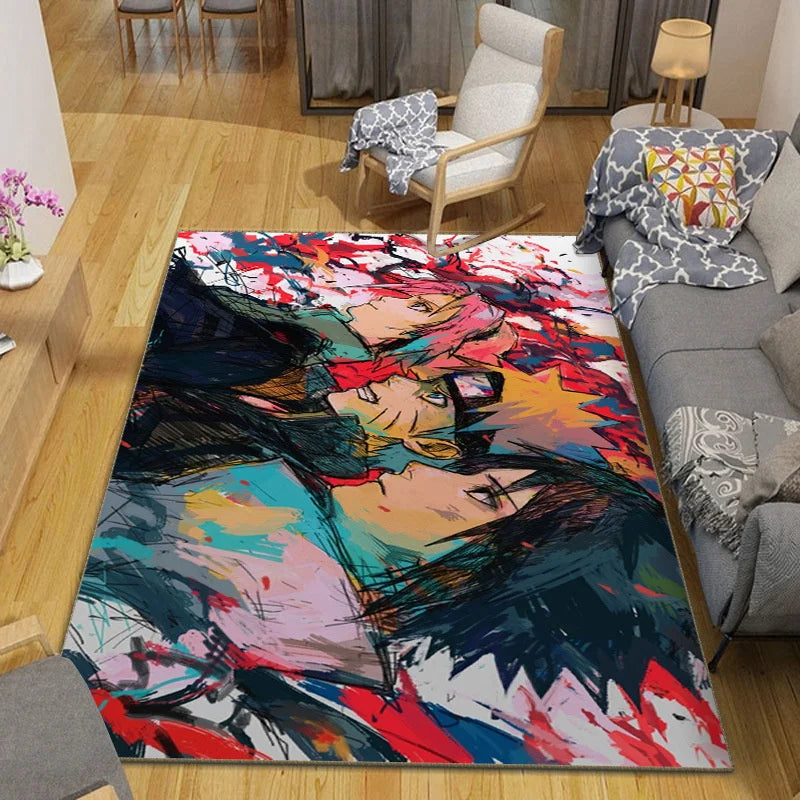 MINISO Naruto Pattern Living Room Carpet – Japanese Anime Non-Slip Floor Mat
