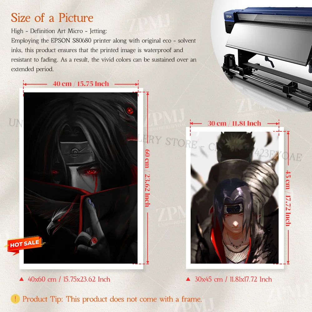 Adorn your walls with the enigmatic presence of Uchiha Itachi. This captivating canvas print poster is an ideal addition for anime enthusiasts and Naruto fans seeking to elevate their home decor with a touch of Japanese anime artistry.