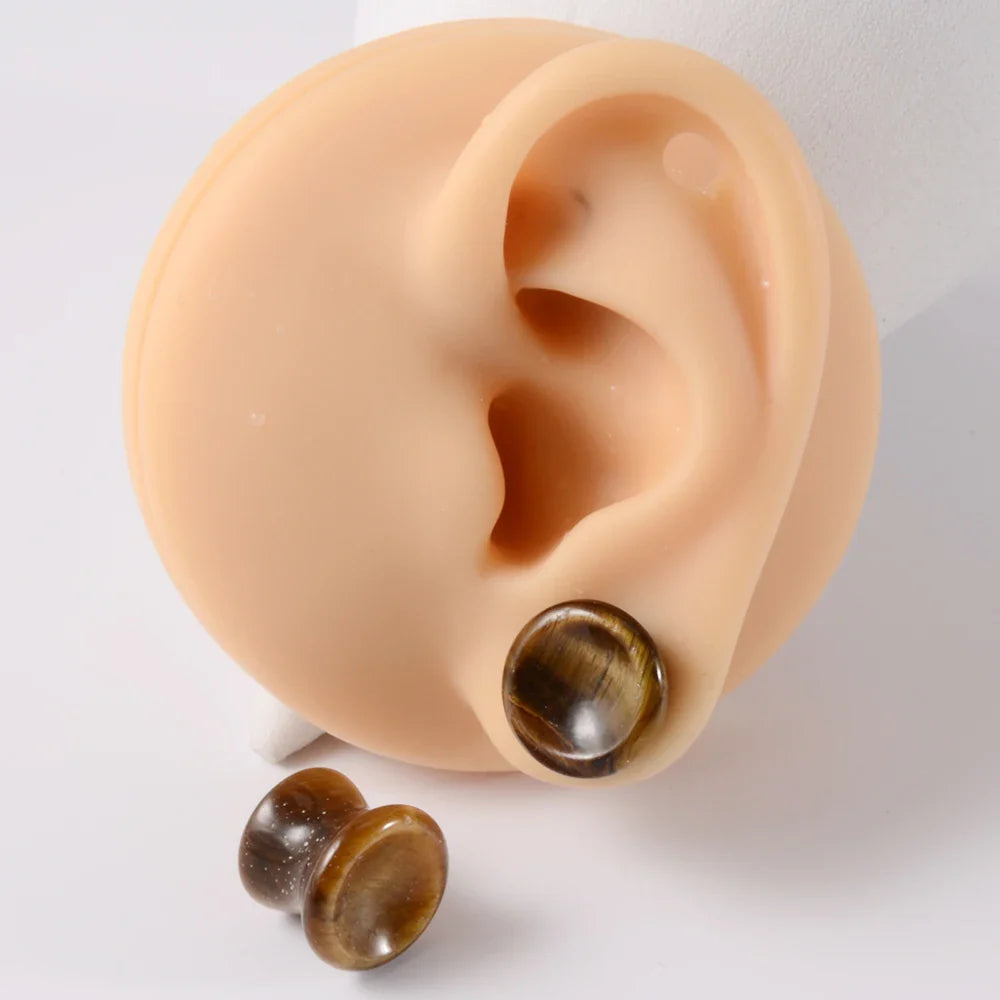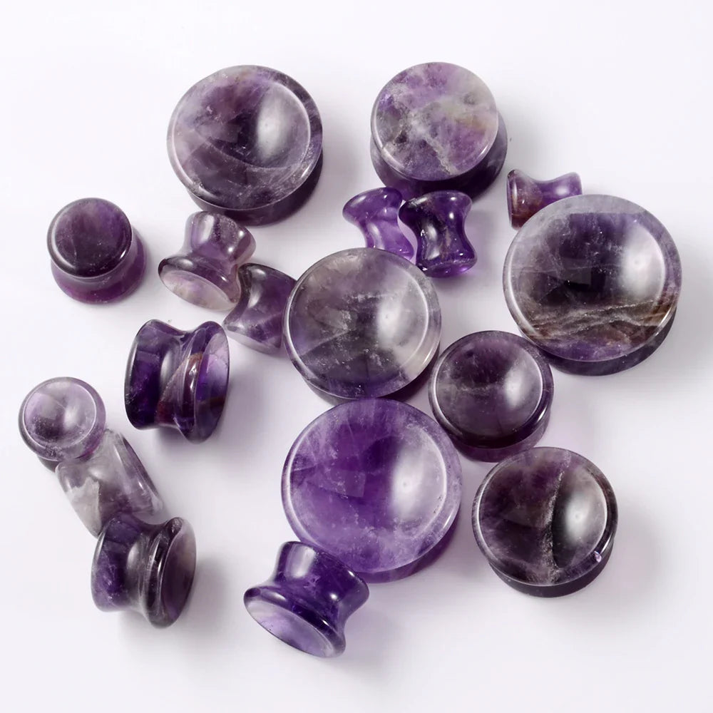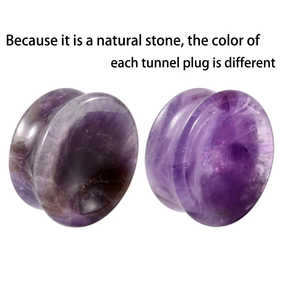 Make a statement with these uniquely designed Concave Ear Plugs, crafted from beautiful natural Amethyst, Tiger's Eye, and Howlite crystal stones. Featuring a double-flare solid gauge, these plugs offer both a striking aesthetic and comfortable wear for your stretched piercings.