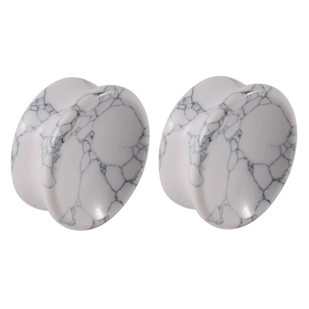 1 Pair New Design Amethyst Tiger Cat Eye Howlite Crystal Stone Concave Ear Plug Double Flare Solid Gauge Piercing Jewelry