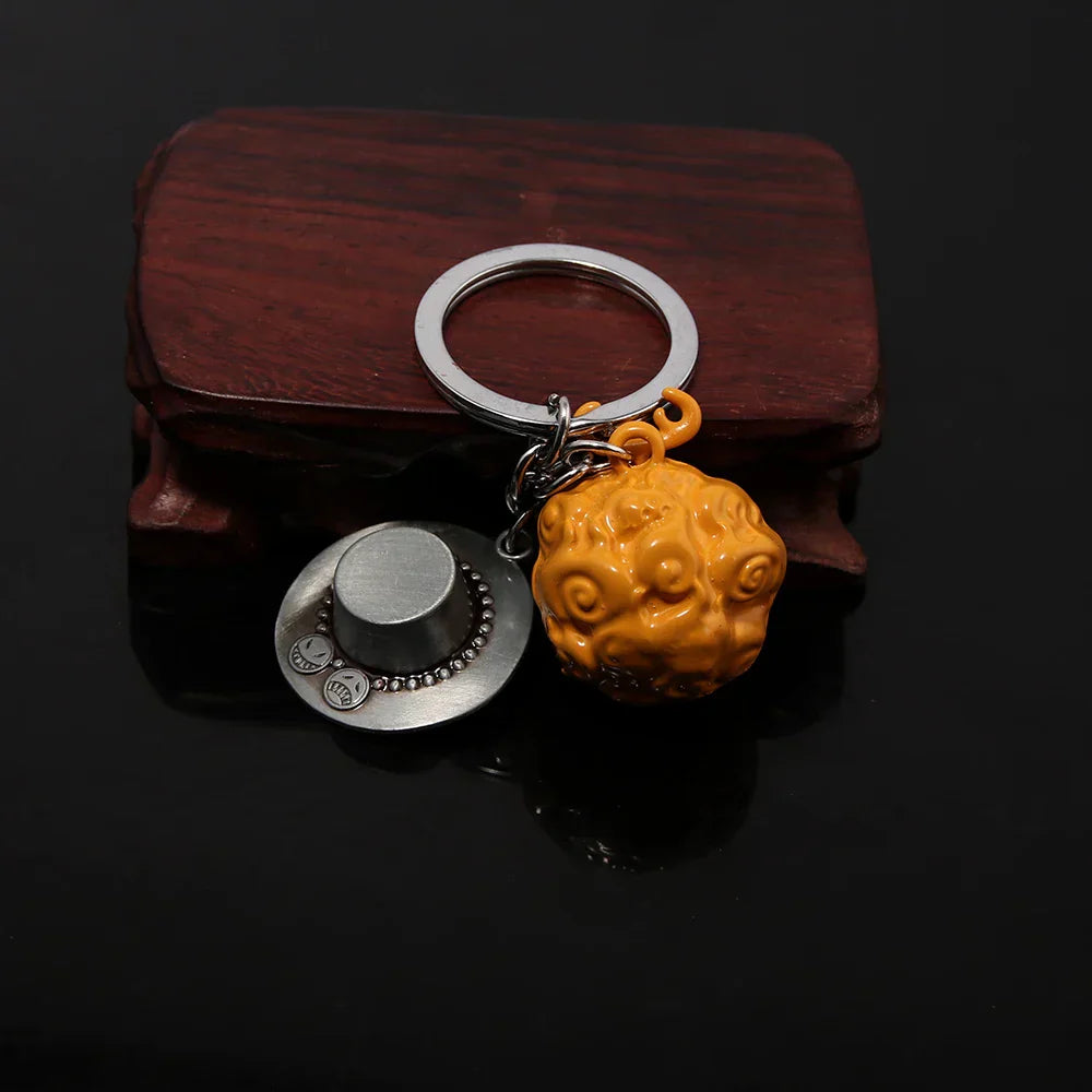 Unlock your pirate potential with this fun and collectible Devil Fruit keychain featuring Zoro, Ace’s hat, and rubber fruit designs — perfect for fans and kids!